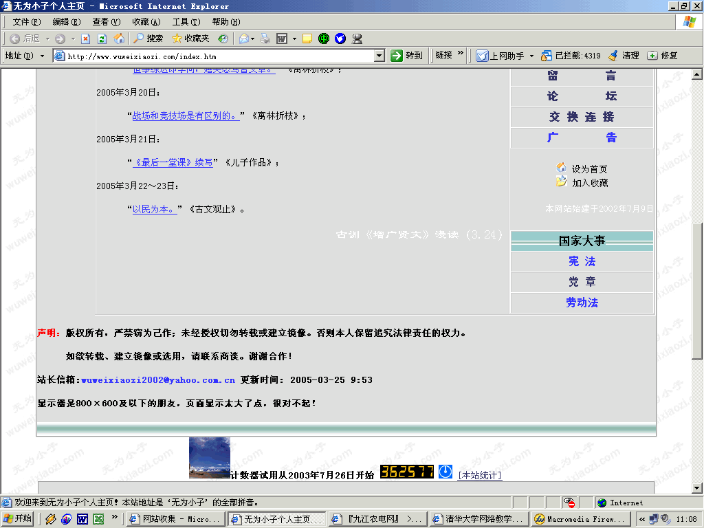 放到网上和大家分享。于是便做了现在这个“无为小子个人主页”网站。随之而来的